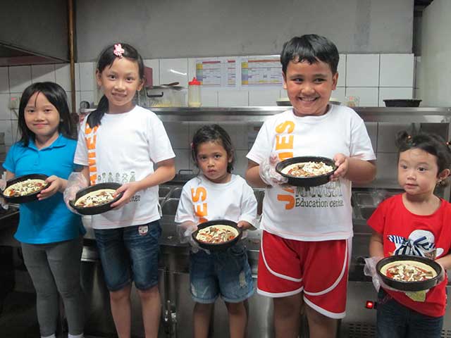 Kita lihat aksi murid-murid James English Course menjadi koki pembuat pizza .... mari kita lihat.....
